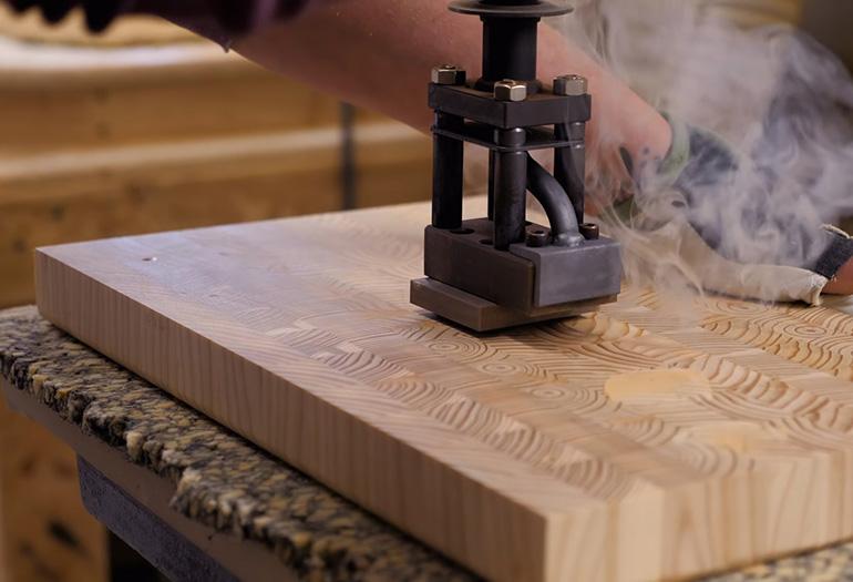 Don Beamish, ředitel firmy "Larch Wood Canada", který tato krájecí prkénka navrhl a uvedl na trh v roce 2005, vypráví ve videorozhovoru z jakých kroků výroba těchto prkének sestává.