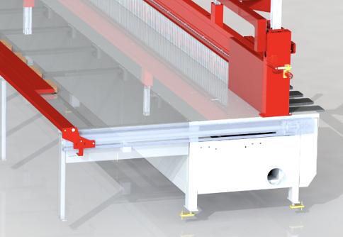 Letmé zavěšení sloupku bylo konstruováno pro zákazníky, kteří mají stroj zařazen do linie s materiál potřebují bezprostředně po řezu přesouvat doprava z pohledu obsluhy stroje, např na dopravník anebo krátící pilu a nechtějí neustále po-