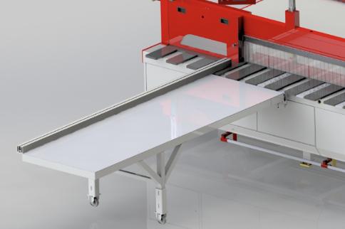 Pro snadnější manipulaci materiálu po pracovní ploše, můžeme doporučit příčné válce, které usnadňují manipulaci s těžkým materiálem po povrchu pracovního stolu. Tohle důmyslné řešení lze nalézt v kombinaci zkracovací pily UKS + rozmítací pily FLS ECO