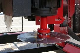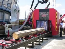 Reže kmene až do dĺžky 12m, priemer 1m. Max. rezaný rozmer 21x21cm. Odsávanie od obidvoch kotúčov.