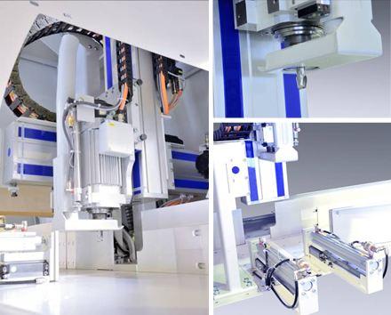 Vŕtacia a frézovacia jednotka je integrovaná do skracovace stanice pred pílovým kotúčom. Má vlastné odsávanie priamo na nástroji. počas obrábania je dielec upnutý dvomi prítlačnými agregátmi.