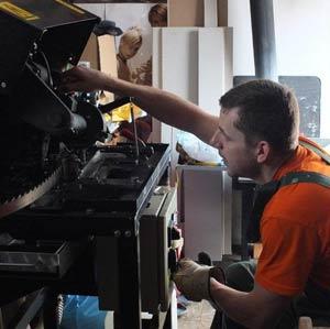 "Právě jsme dokončili modernizaci našeho střediska ReSharp v Praze, - pokračuje Marek Greill, - a nainstalovali svařovací zařízení IDEAL. To nám umožní opravovat prasklé pilové pásy a rychle vyrobit pilové pásy nestandardní délky z originální metráže pásoviny firmy Wood-Mizer".