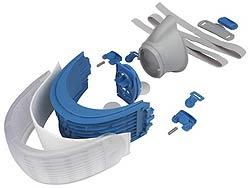 AIR-ACE respirátor bol pôvodne vyrobený pre ľudí trpiacich rôznymi druhmi alergií a práve preto pozostáva z nealergických materiálov. Je navrhnutý tak, aby náustok, ktorý je vyrobený z jemnej prírodnej gumy, priliehal ku krivkám tváre. Pre zabezpečenie dokonalej priliehavosti je náustok vyrábaný v rozdielnych veľkostiach. AIR-ACE respirátor je zabezpečený veľkými oddelenými vdychovými a výdychovými ventilmi, ktoré zaručujú, že aj filter aj náustok zostanú suché a pohodlné. Správne tesnenie masky sa ľahko skontroluje testovacou zátkou. Veľká plocha filtra je najdôležitejšou časťou masky, pretože vytvára minimálny odpor pri dýchaní a predlžuje prevádzkovú životnosť masky, ktorá sa práve preto stáva lepšou, ako sú ostatné masky na trhu. Mriežka chráni filter a drží ho bezpečne tak, aby bola zaistená vzduchotesnosť. AIR-ACE respirátor je ľahké nasadiť a zosadiť. Nastaviteľná gumička okolo hlavy umožňuje nasadiť si masku jednoducho a pohodlne bez zbytočného tesnenia. Nízka hmotnosť a ergonomický tvar masky s ťažiskom blízko tváre umožňujú pracovať efektívne dlhú dobu bez pocitu únavy krku alebo krčných svalov. Výdychový ventil chráni nositeľa okuliarov pred ich zahmlievaním. AIR-ACE respirátor môže byť doplnený priehľadným ochranným štítom v situáciách, ktoré si vyžadujú ochranu očí. Ochranný štít sa ľahko pripojí priamo na masku a efektívne chráni pred prichádzajúcimi zásahmi čiastočiek dokonca aj zospodu.